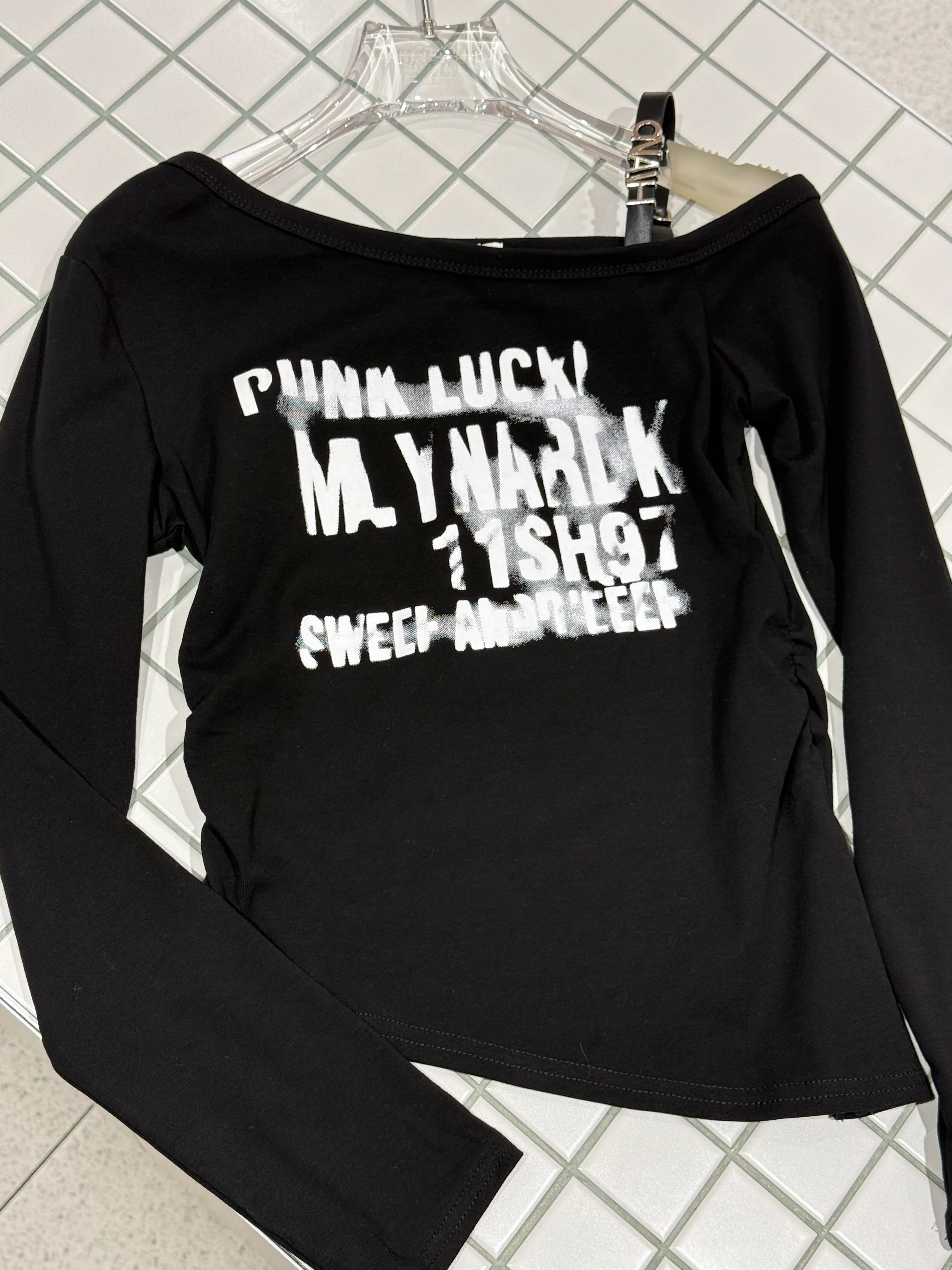 Asymmetric Shoulder Graphic Top