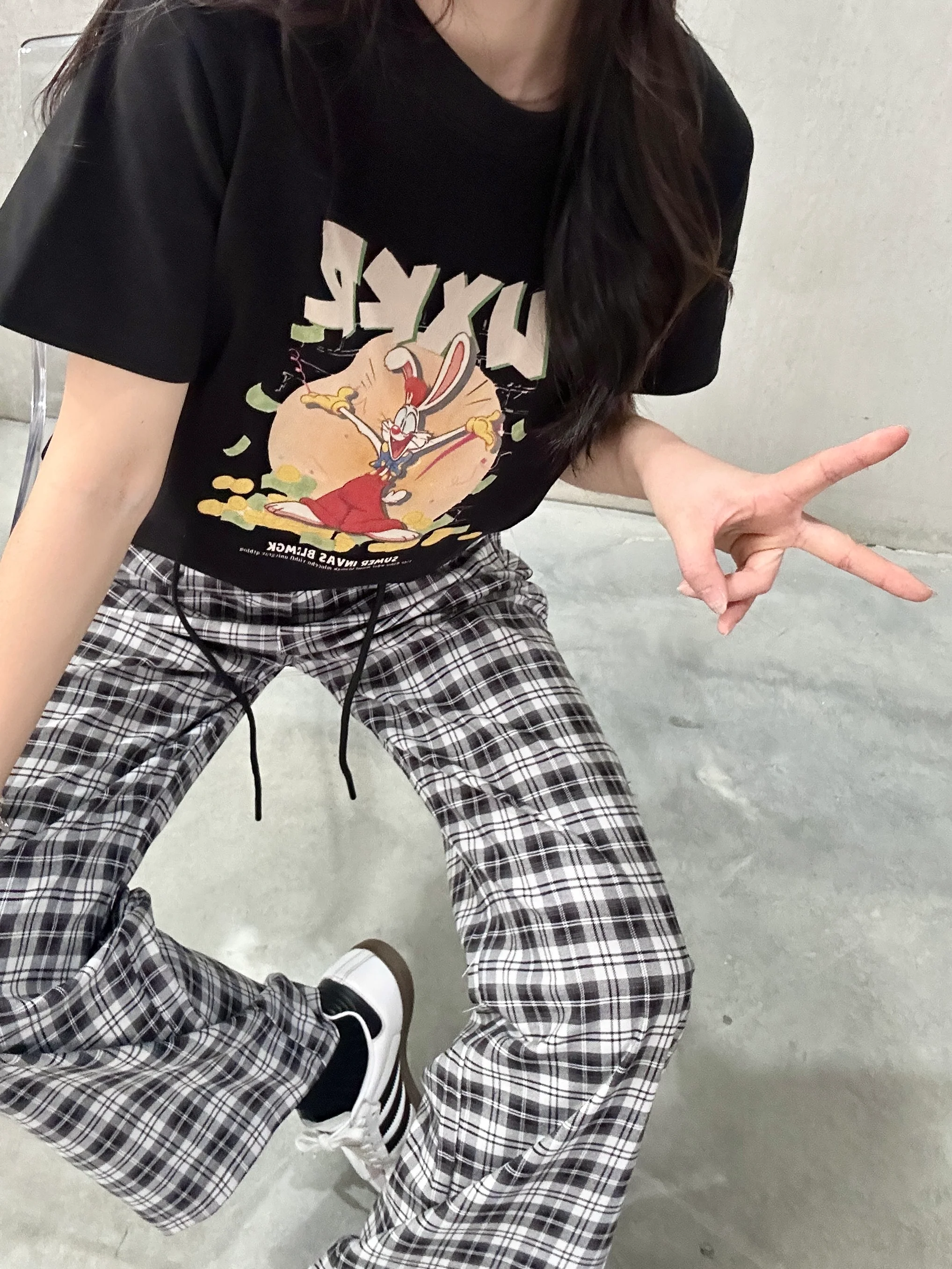 Oversized T-Shirt in Black with Cartoon Rabbit Graphic