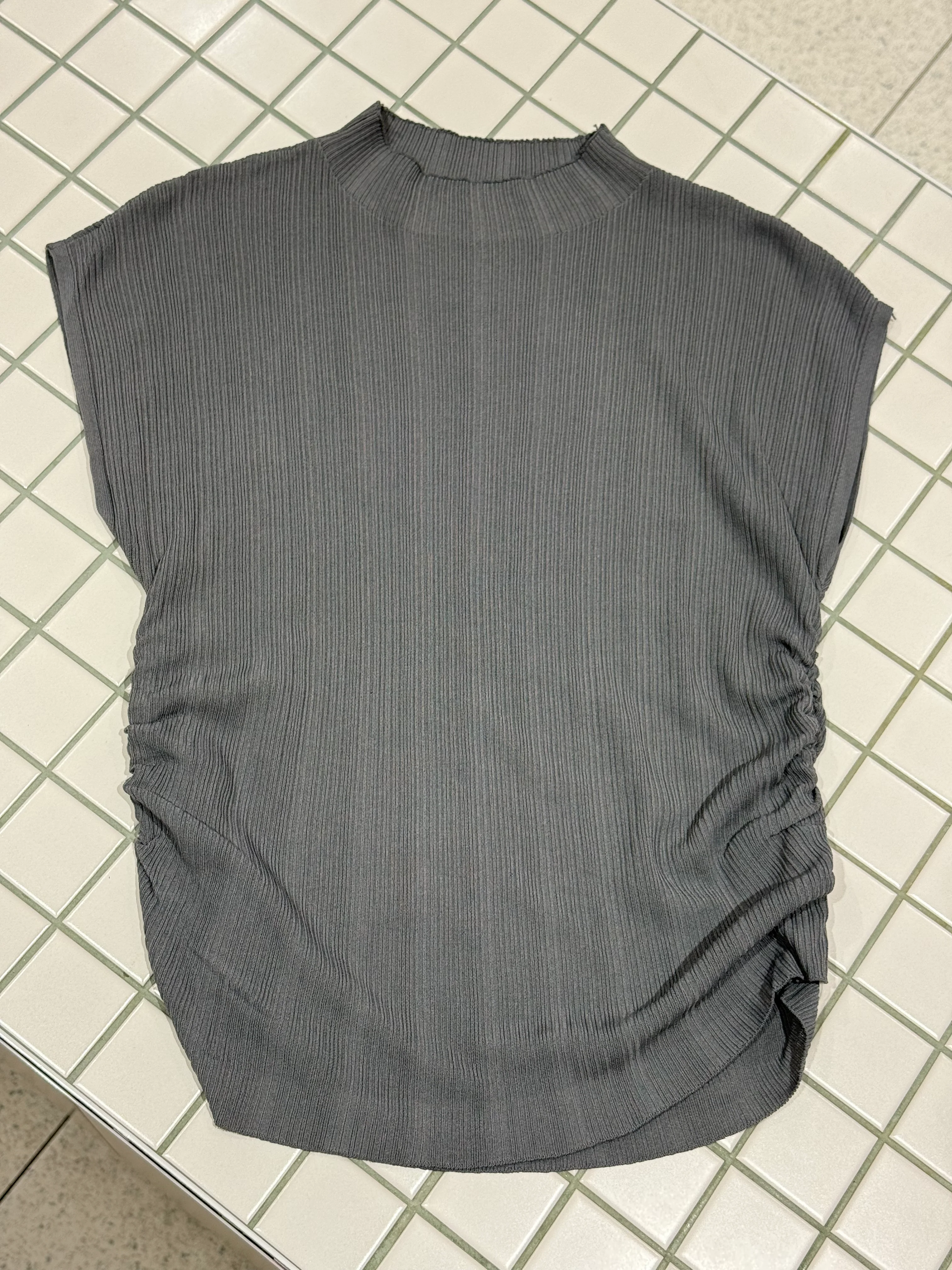 - Vertical ribbed knit texture adds subtle structure and stretch
